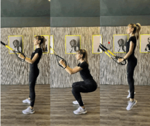 Τρόπος εκτέλεσης: Κρατάω τους ιμάντες τεντωμένους, αγκώνες λυγισμένοι δίπλα στο σώμα ,τα πόδια ανοιχτά στην απόσταση των ώμων, ουδέτερη σπονδυλική στήλη.